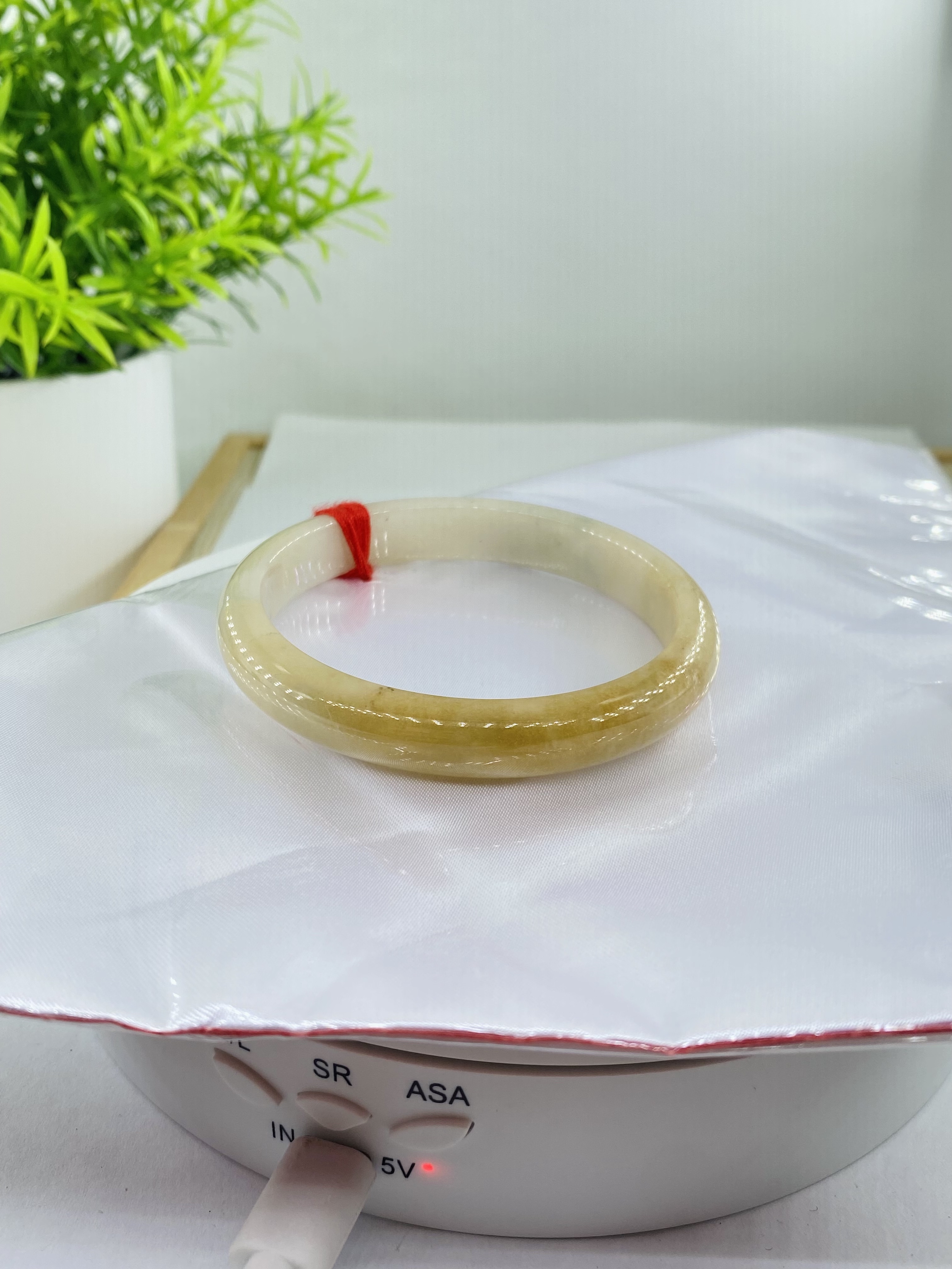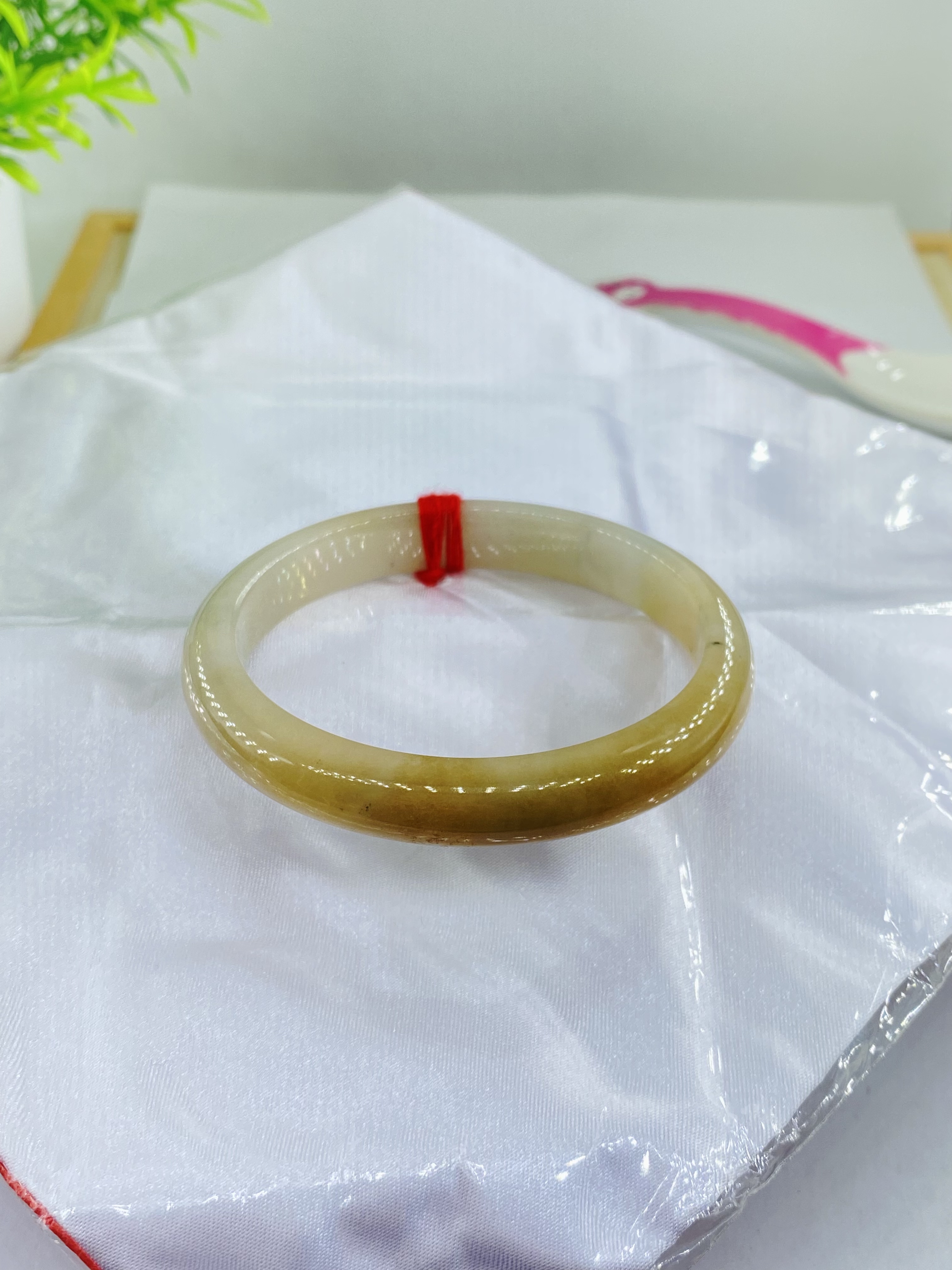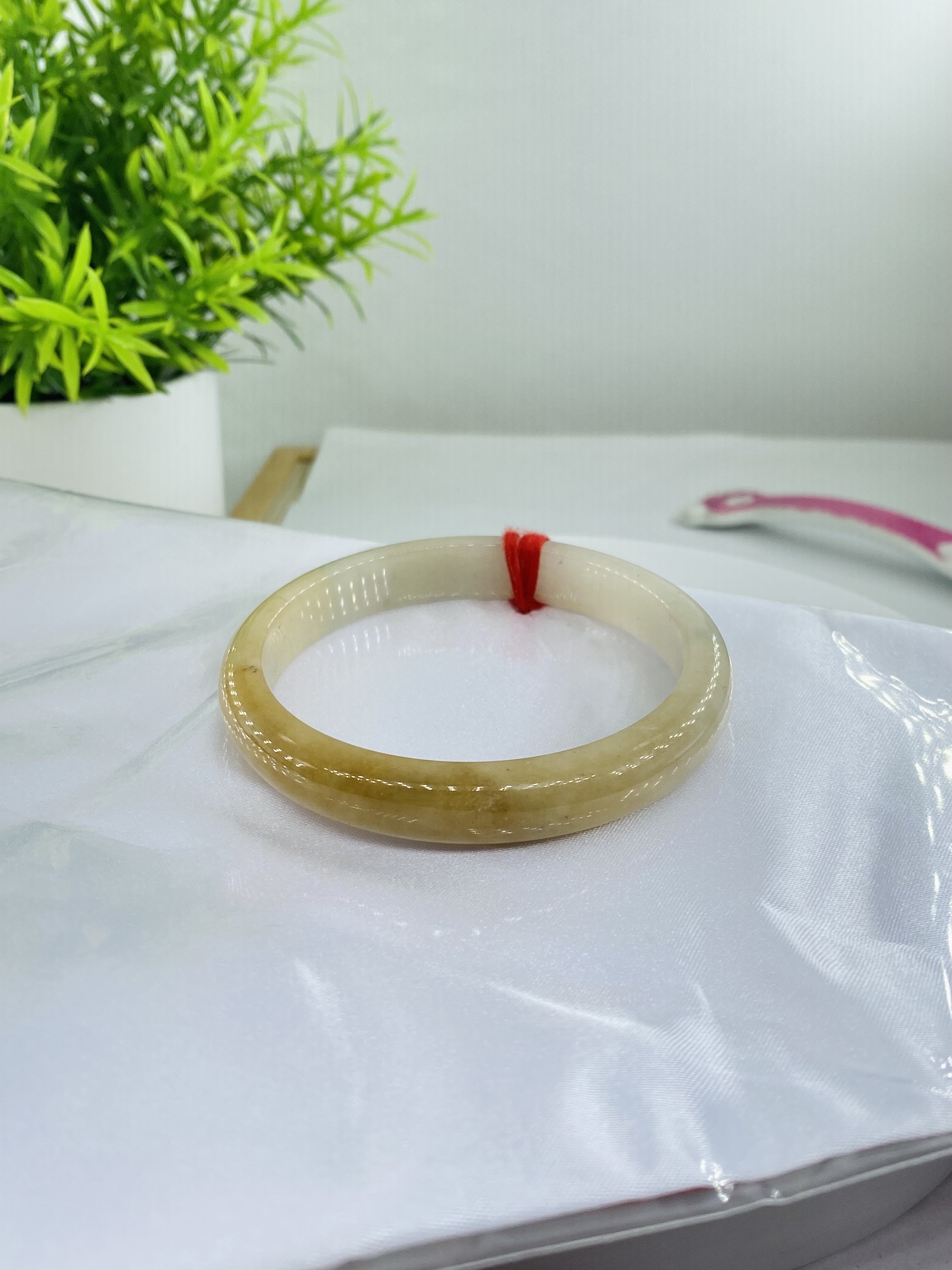 緬甸翡翠A貨 冰黃翡飄金黃正圈手鐲 尺寸 57*10.1*6.6