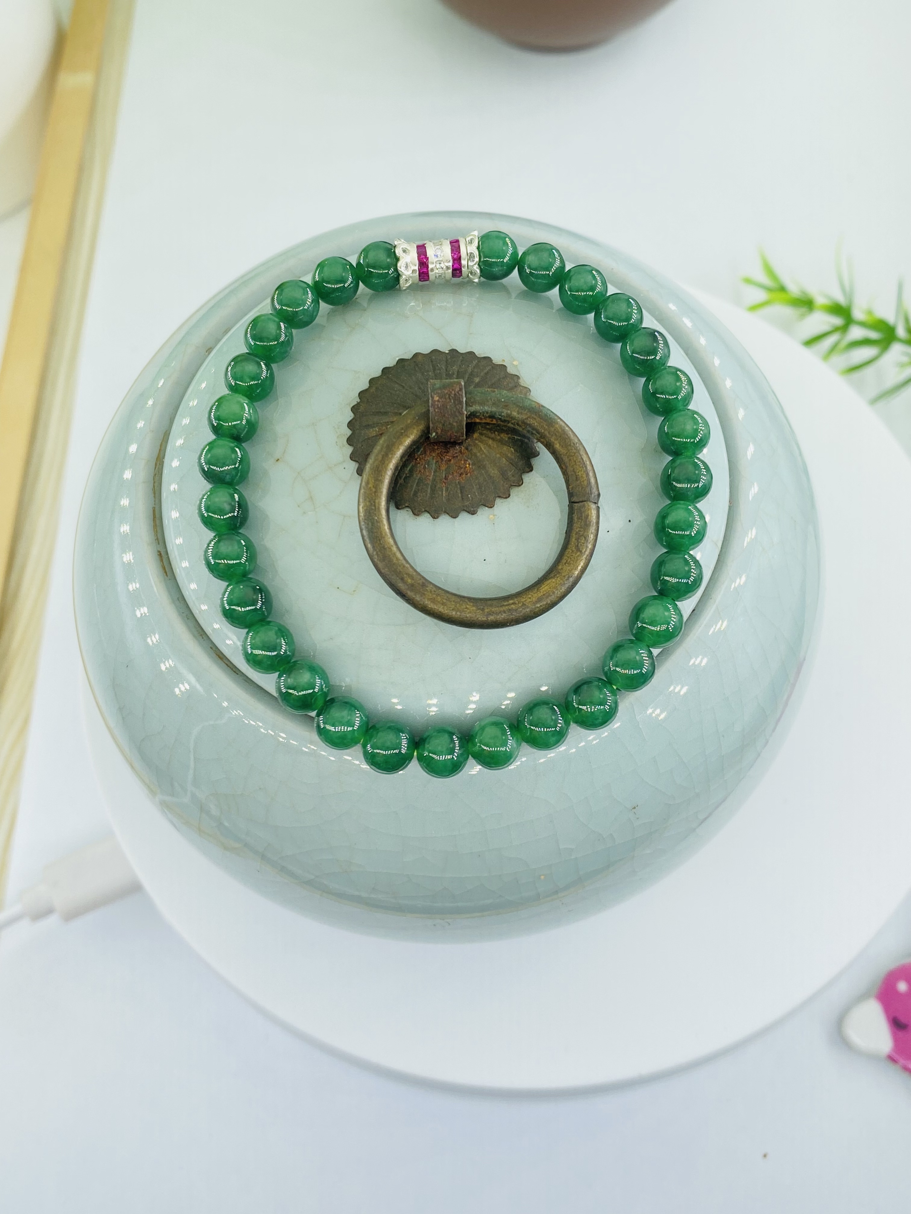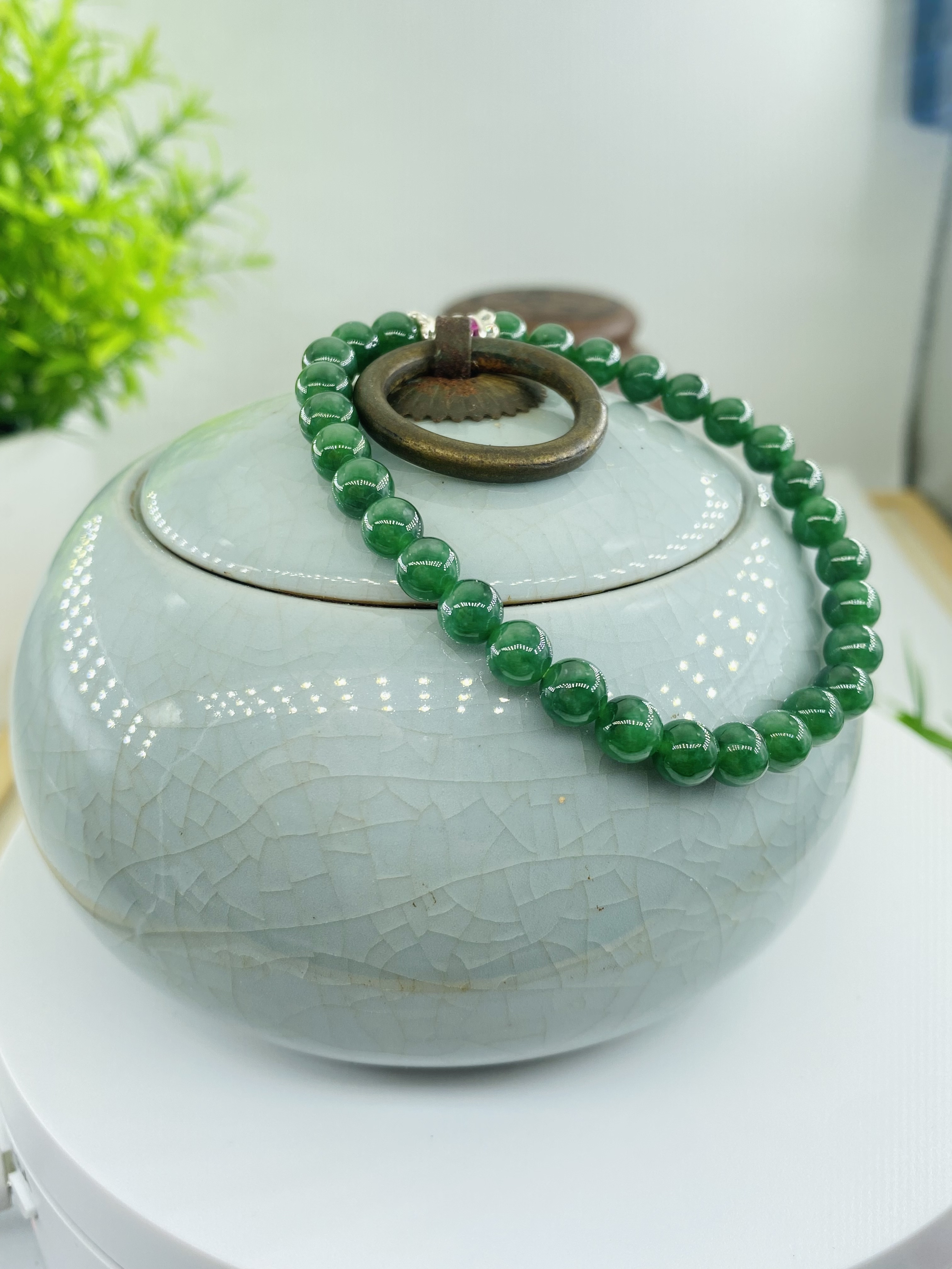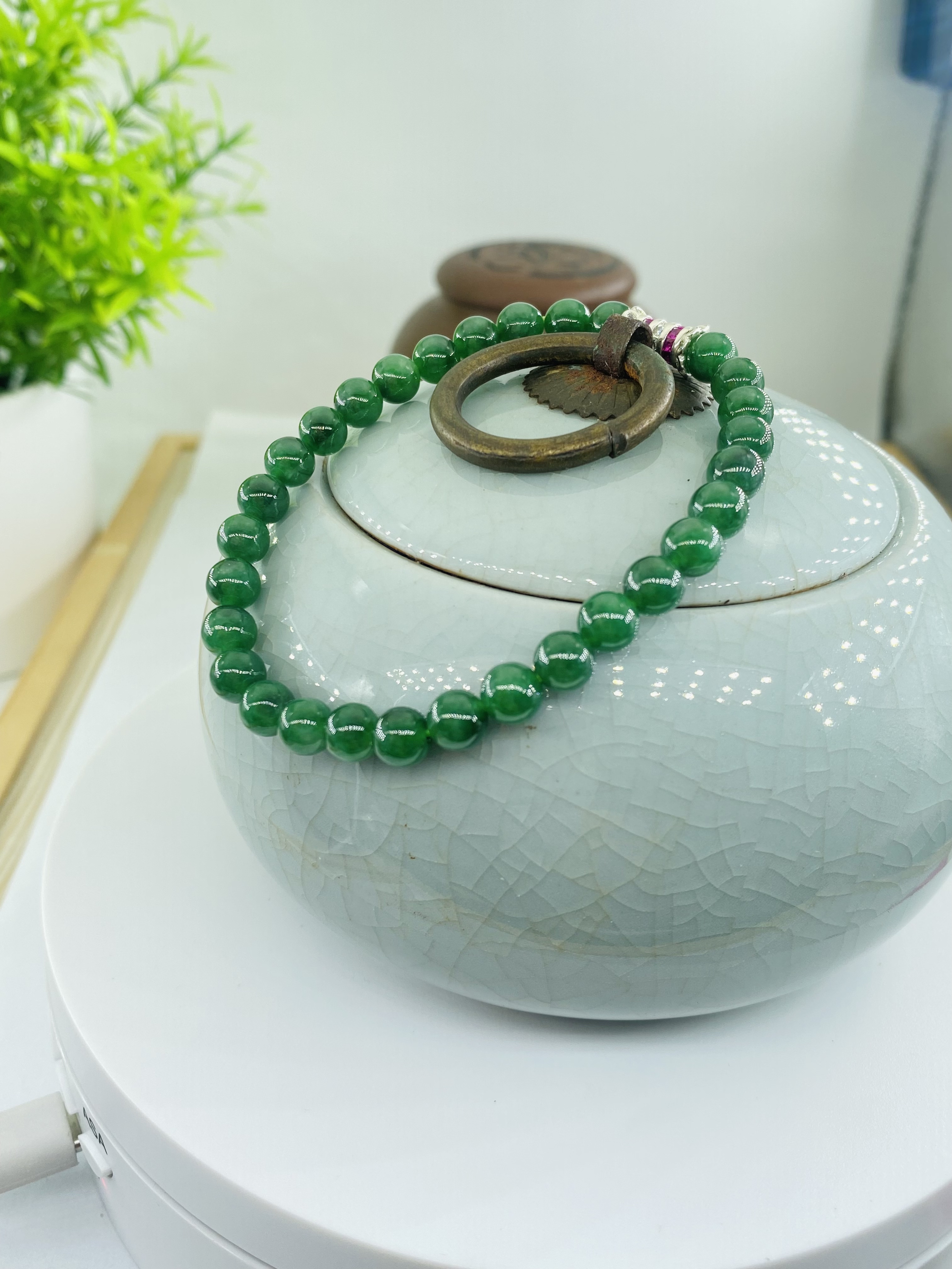 緬甸翡翠A貨 正冰色壓種老坑藍綠圓珠手鍊 尺寸 6mm,30粒